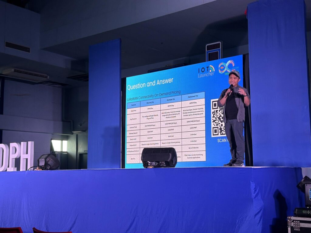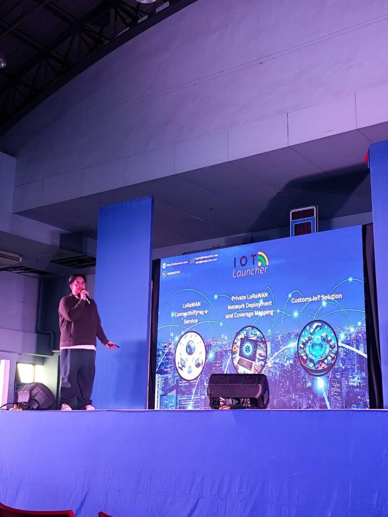 Beyond hardware showcases, IoT Launcher actively engaged attendees by educating them on LoRaWAN’s potential. IoT Solutions Engineer Vhon Walter Morales took the stage to discuss how LoRaWAN could benefit the Philippines, highlighting its long-range, low-power advantages compared to Wi-Fi and cellular networks. He also demonstrated a smart parking system using IoT Launcher’s gateways and Arduino-based sensors and explained key concepts such as LoRa chirp modulation, data rate trade-offs, and network security.